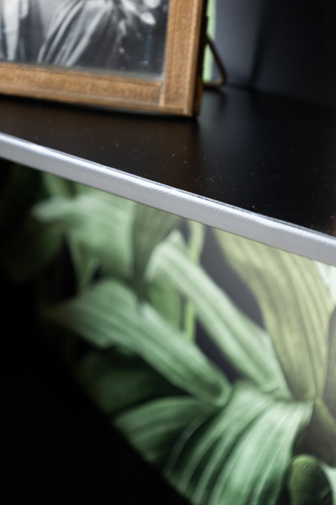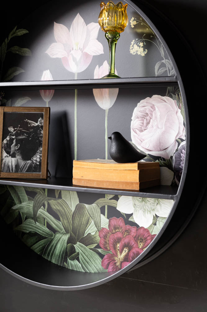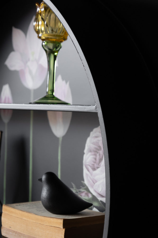 Add a touch of whimsy to your home with our Floral & Black Metal Display Shelves. This pretty piece features beautiful, intricate floral patterns set against a dramatic, black backdrop. These shelves are not only visually pleasing but also durable and functional - the two-tier design provides plenty of space for displaying your favourite trinkets. Embrace the beauty of nature with a dark, dramatic twist and let the Floral & Black Metal Display Shelves transform your space into a magical haven.