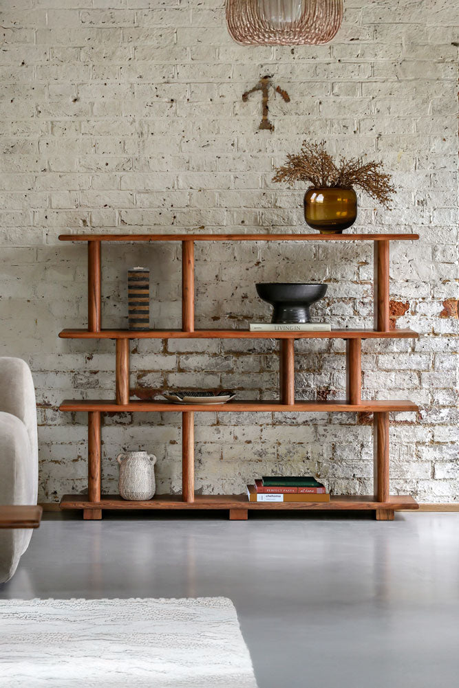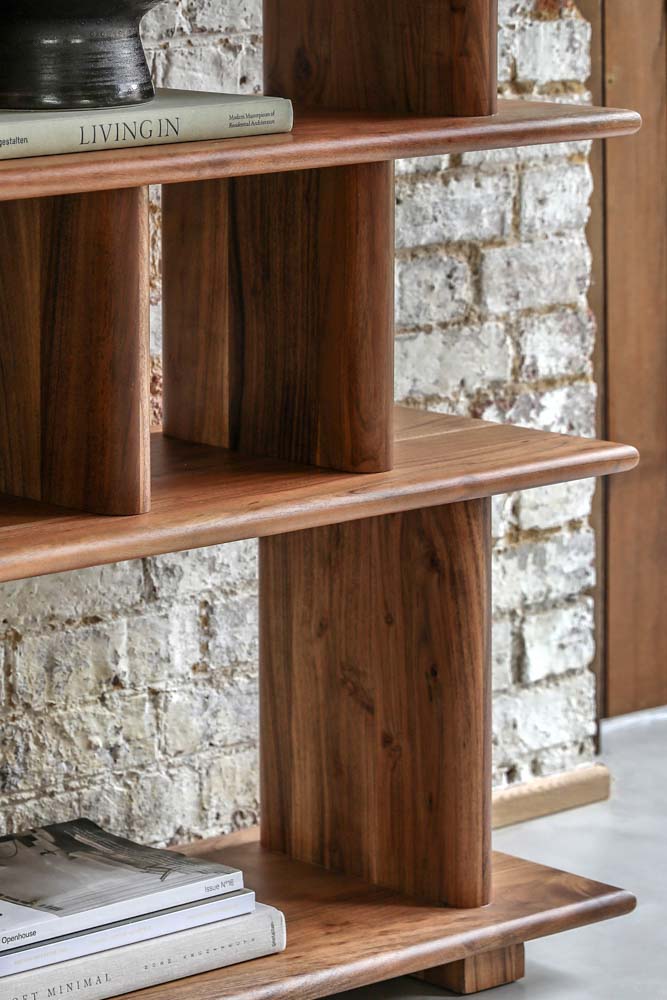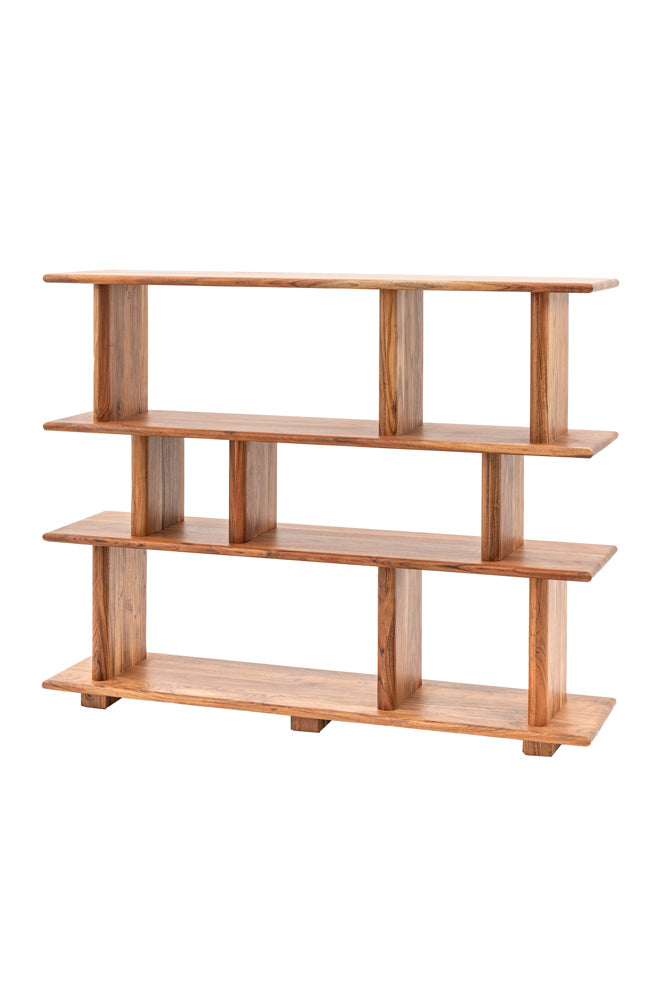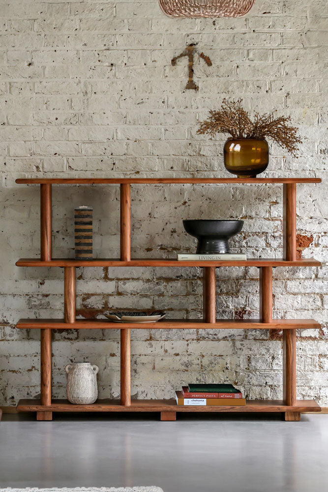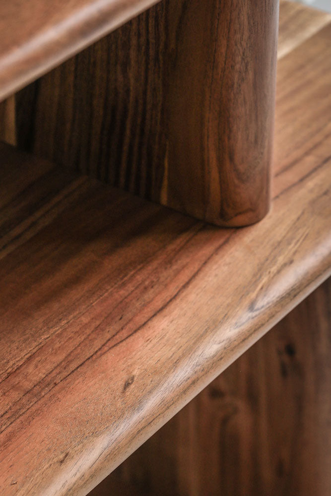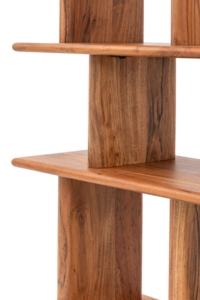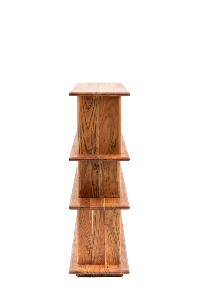 Say hello to your new favourite display cabinet, the Large Freestanding Tiered Display Shelves. Crafted from gorgeous acacia wood in a natural finish, this display shelving unit is here to organize your space whilst also showing off your personality. Whether you're styling it with books, plants or those quirky ornaments you couldn't resist buying, this shelving unit has got you covered. Its staggered, open design adds a modern touch whilst giving everything its own special place, because even your decor deserves to feel fancy. The warm wood tones play nicely with just about any interior style, from boho chic to maximalist, to cosy rustic vibes. Pop this wooden display cabinet in your bedroom, hallway or living room and let it work its magic. This is more than just a shelving unit; its a stage for your favourite things.