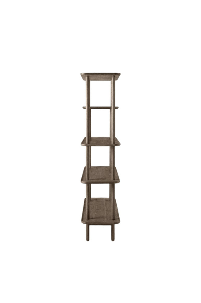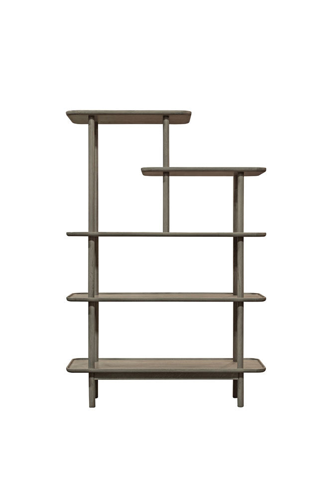 Elevate your home with this effortlessly cool Tiered Oak Display Cabinet In Grey. With its perfectly imperfect asymmetric design, this oak display unit is modern artistry at its best. These grey shelves showcase a soft grey tone that adds a fresh, stylish vibe, while the wood texture brings a rustic, natural charm to your home that feels warm and inviting. Made to boast your beautiful personality, the staggered tiers create endless opportunities to get creative with your décor. Whether it's plants, a mix of books or quirky trinkets, this grey display cabinet makes absolutely everything look seamlessly curated. Versatile enough for any room, this grey shelving is a statement piece, blending modern style with a touch of laid-back, boho charm. Functional and chic, this is storage, reimagined!