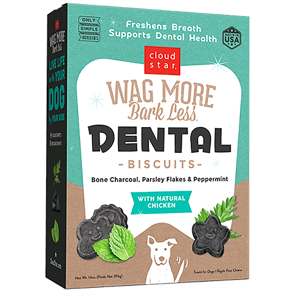 Wag More Bark Less Oven Baked Dental Biscuits Charcoal, Chicken & Peppermint Dog Treats